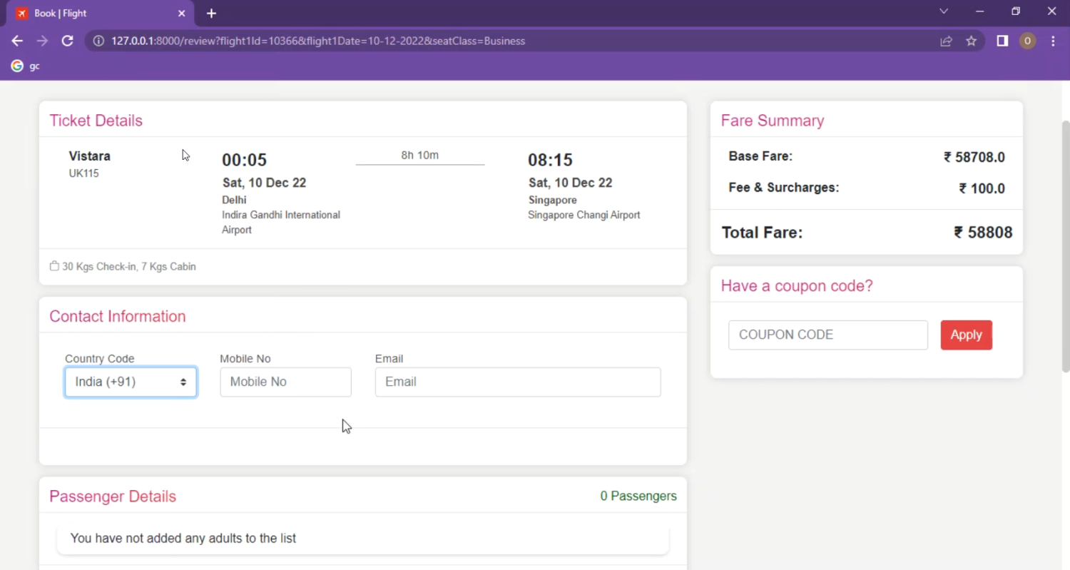 The proposed Django-based Airline Management System provides a modern, centralized, and user-friendly web solution for both administrators and passengers. Administrators can manage flight schedules, aircraft, staff, and booking records, while passengers can search flights, reserve seats, make online payments, and download e-tickets. The system includes secure login for admins and users, database-backed operations for reliability, and Django ORM for efficient data management. Notifications for booking confirmations, flight status updates, and cancellations are automated to improve communication. Compared to the existing system, this solution offers real-time access, better security, scalability, and reduced dependency on manual processes, thus enhancing both operational efficiency and customer satisfaction.