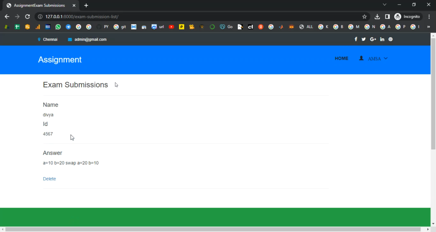 Assignments play a crucial role in the academic process as they help students demonstrate learning, improve skills, and engage in continuous assessment. Traditional assignment submission and evaluation methods rely heavily on manual processes, which are time-consuming and inefficient. This project, Assignment Management System in Django Python, provides a web-based platform for managing assignment creation, submission, and evaluation. The system allows teachers to upload assignments, set deadlines, and grade submissions, while students can view, upload, and track their assignment progress online. Built on the Django framework, the platform ensures secure user authentication, role-based access for teachers and students, and database-driven operations for scalability. This solution enhances transparency, reduces paperwork, and improves academic efficiency.