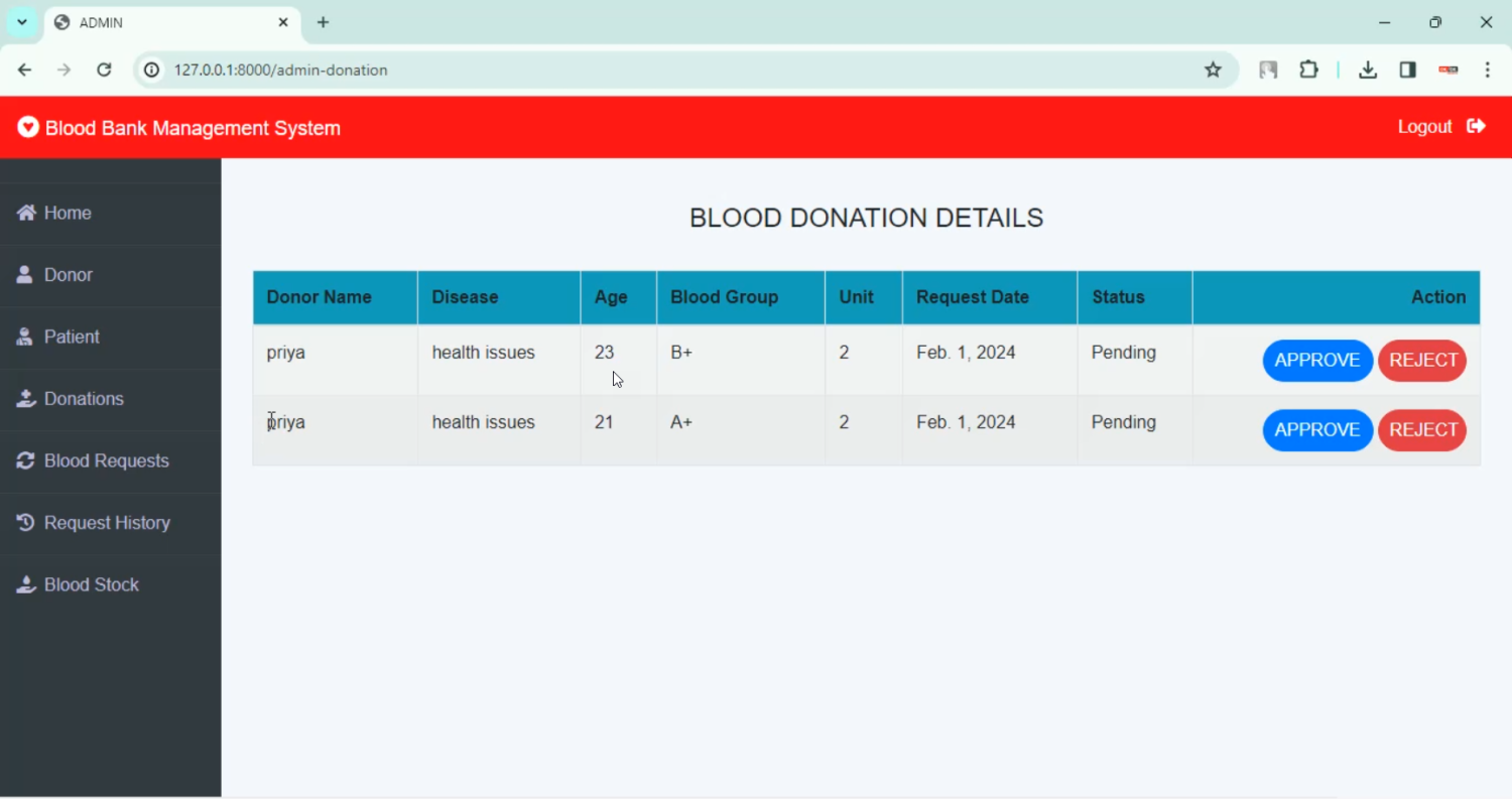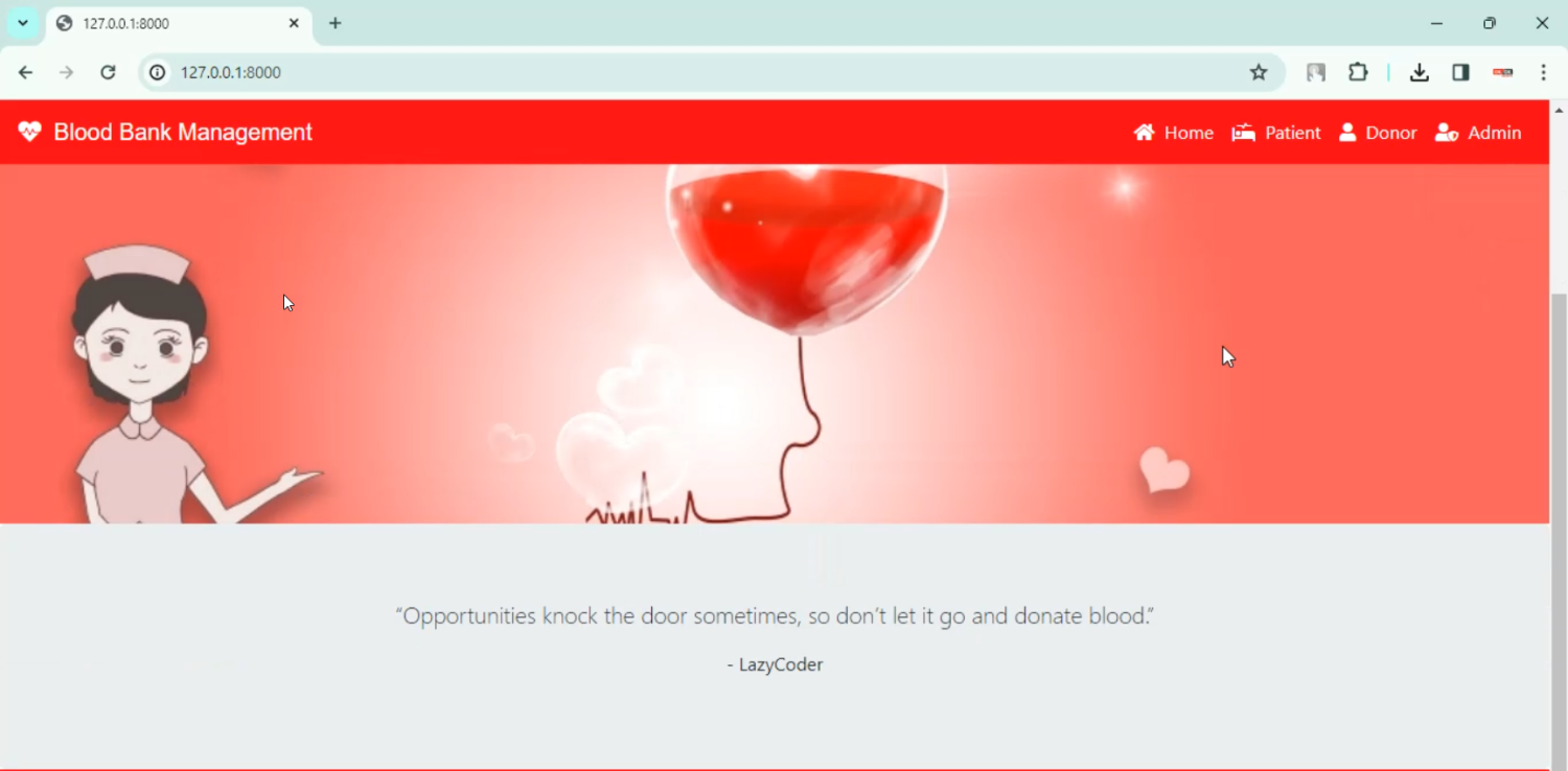 The proposed solution introduces a Django-based Blood Bank Management Information System that centralizes and automates all blood bank activities. Donors can register, update donation history, and receive reminders for future eligibility. Hospitals and administrators can manage requests, monitor blood stock levels, approve or reject patient needs, and generate detailed reports. Patients or recipients can search for specific blood groups, request donations, and track the status of their requests. The system integrates real-time inventory management, email/SMS notifications, secure authentication, and role-based access control. By leveraging Django’s MVT (Model-View-Template) architecture, the solution ensures scalability, data security, and user-friendly interaction. Compared to existing methods, this system offers faster communication, better decision-making, improved accountability, and reliable access to blood availability information, ultimately supporting life-saving healthcare operations.