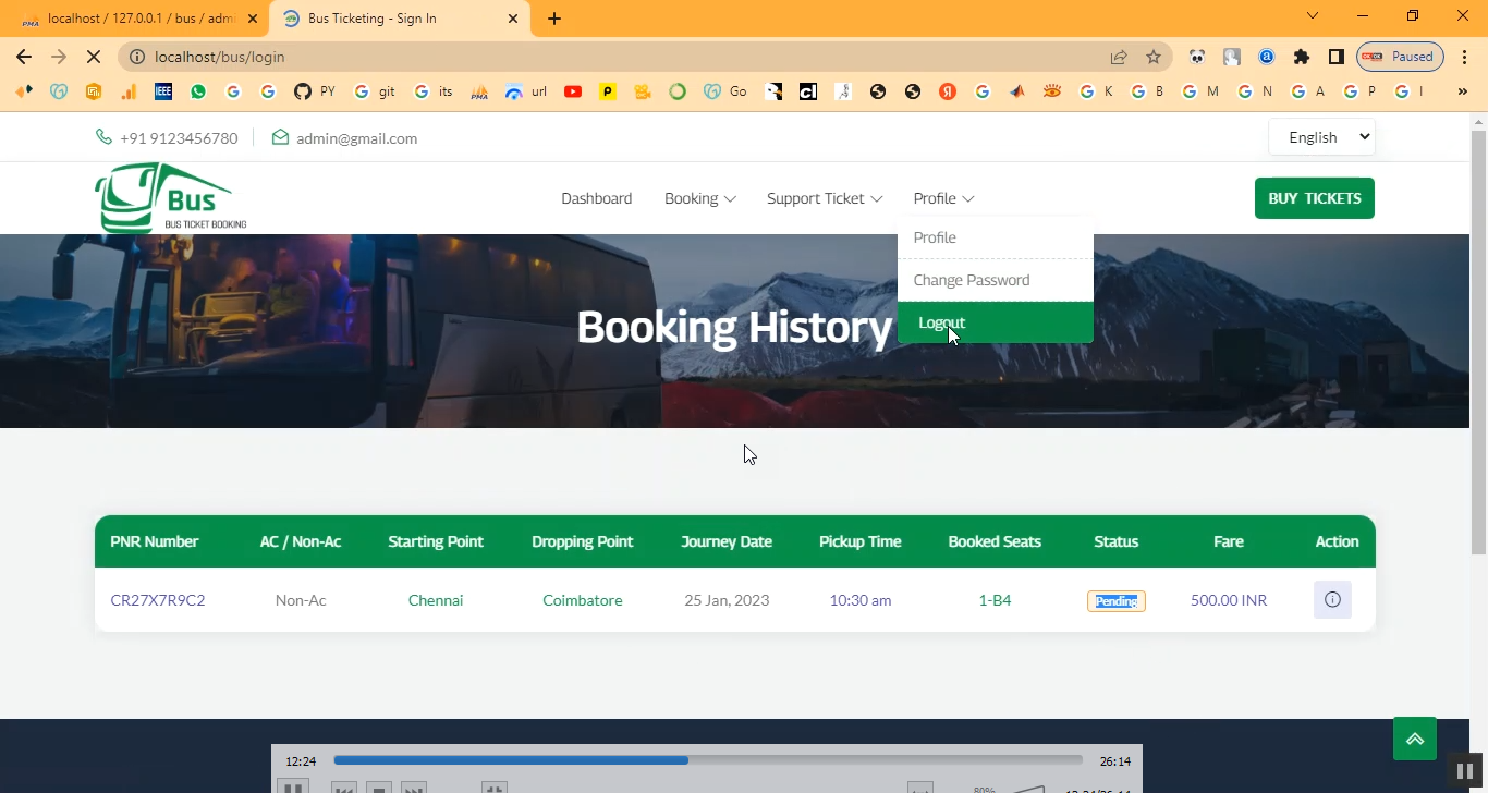 The Bus Ticket Booking Seat Allocation System in PHP is designed to automate the process of booking bus tickets with real-time seat selection and allocation. This system allows passengers to view available buses, select their preferred seats, and complete ticket bookings online. Administrators can manage bus routes, schedules, fares, and seat layouts from a centralized dashboard. Built using PHP and MySQL, the platform ensures secure transactions, real-time updates, and a seamless user experience for both passengers and bus operators.