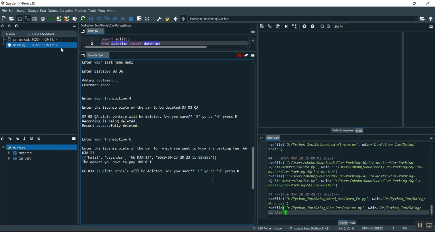 Car parking management has become an essential requirement in urban areas where the number of vehicles is rapidly increasing. Manual methods of managing parking slots are inefficient, time-consuming, and often lead to confusion, misuse of space, or disputes. This project, Car Parking Simple Management in Python, introduces a lightweight and user-friendly system to efficiently manage available parking slots, vehicle entry, and exit records. The system allows administrators or users to record vehicle details, check available slots, allocate parking space, and generate simple usage reports. Implemented using Python, it provides a console or GUI-based interface (Tkinter/Flask optional) for easy management. The system ensures transparency, reduces manual errors, and offers an effective way to utilize parking resources.