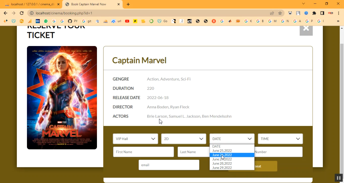 Cinema Ticket Booking System in PHP Application Projects
