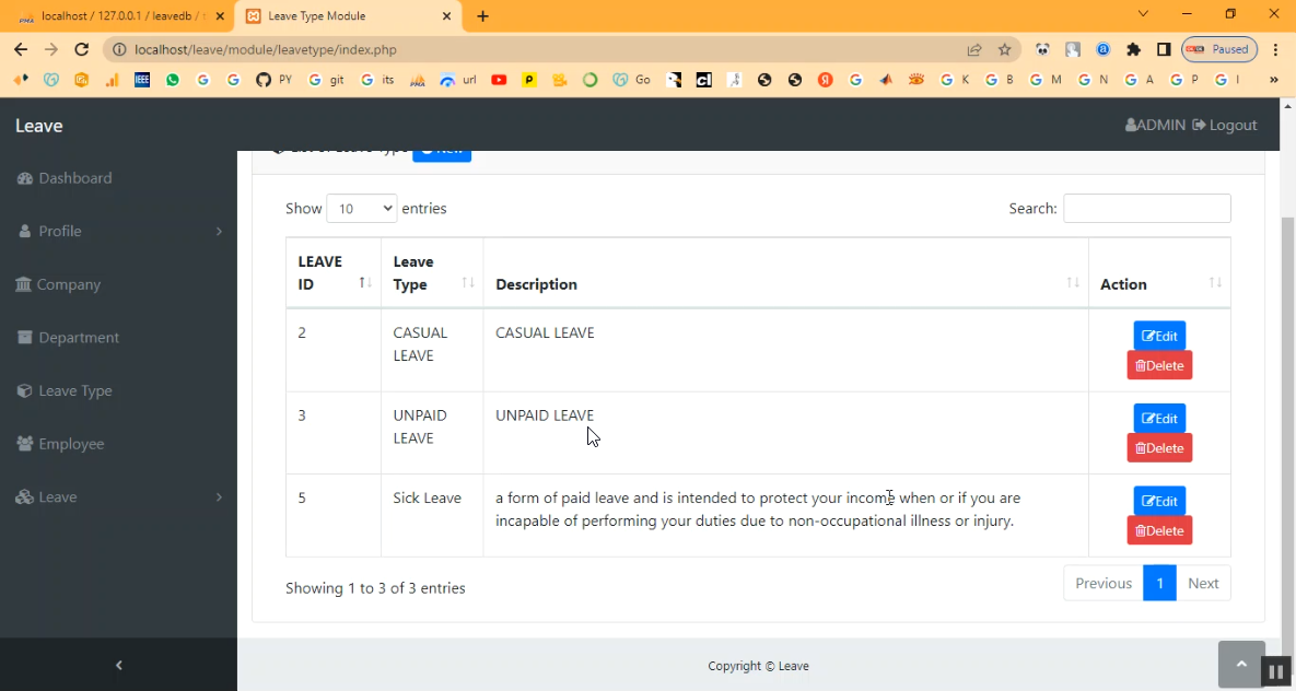 The Company Employee Leave Management System is a PHP-based web application designed to streamline the process of requesting, approving, and tracking employee leave within an organization. It provides a centralized platform where employees can submit leave applications, managers can approve or reject requests, and HR can maintain accurate leave records. Built using PHP and MySQL, the system improves transparency, reduces paperwork, and ensures efficient leave management for both employees and administrators.