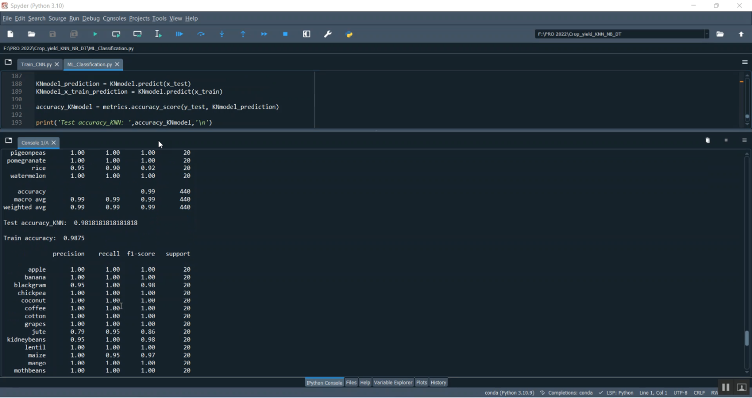 The proposed system applies machine learning algorithms (KNN, Naïve Bayes, and Decision Tree) for predicting crop yield and integrates them into a Streamlit-based web application. The workflow includes data preprocessing (cleaning, feature selection, and normalization), model training using KNN (for pattern-based prediction), Naïve Bayes (for probabilistic classification), and Decision Tree (for rule-based analysis). The system allows users to input soil and climate data through the Streamlit interface, after which the models predict the expected yield. Visualizations such as bar charts, accuracy comparisons, and prediction graphs are also provided. Compared to existing systems, this solution offers better accuracy, ease of use, real-time interaction, and multiple algorithm comparisons, making it a reliable tool for farmers and policymakers.