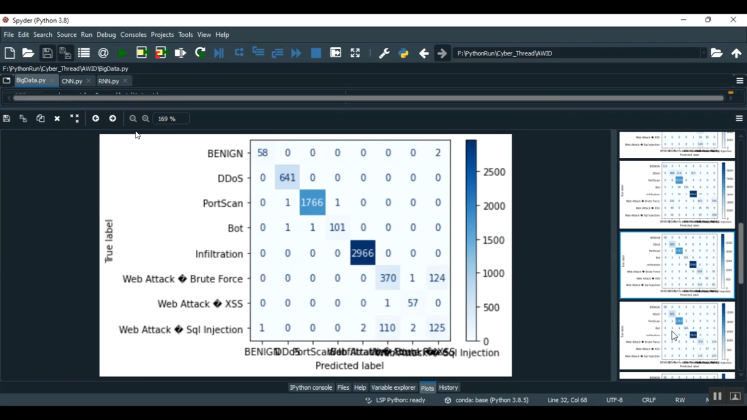 Cybersecurity threats targeting wireless and wired networks are growing in complexity, requiring automated solutions for detection and classification. Public datasets such as UNSW-NB15 and AWID provide large-scale, labeled network traffic that can be used to train machine learning models for intrusion detection. The project “Cyber Threat UNSW AWID in Python” focuses on building a Python-based application that ingests these datasets, applies advanced preprocessing, and develops machine learning models to detect and classify cyber threats. Using Python libraries such as Pandas, Scikit-learn, and TensorFlow/PyTorch, the system evaluates different algorithms (Random Forest, Gradient Boosting, SVM, and Deep Neural Networks) and applies feature selection to identify the most influential predictors. The project demonstrates how open datasets can be used to build scalable and accurate intrusion detection tools.