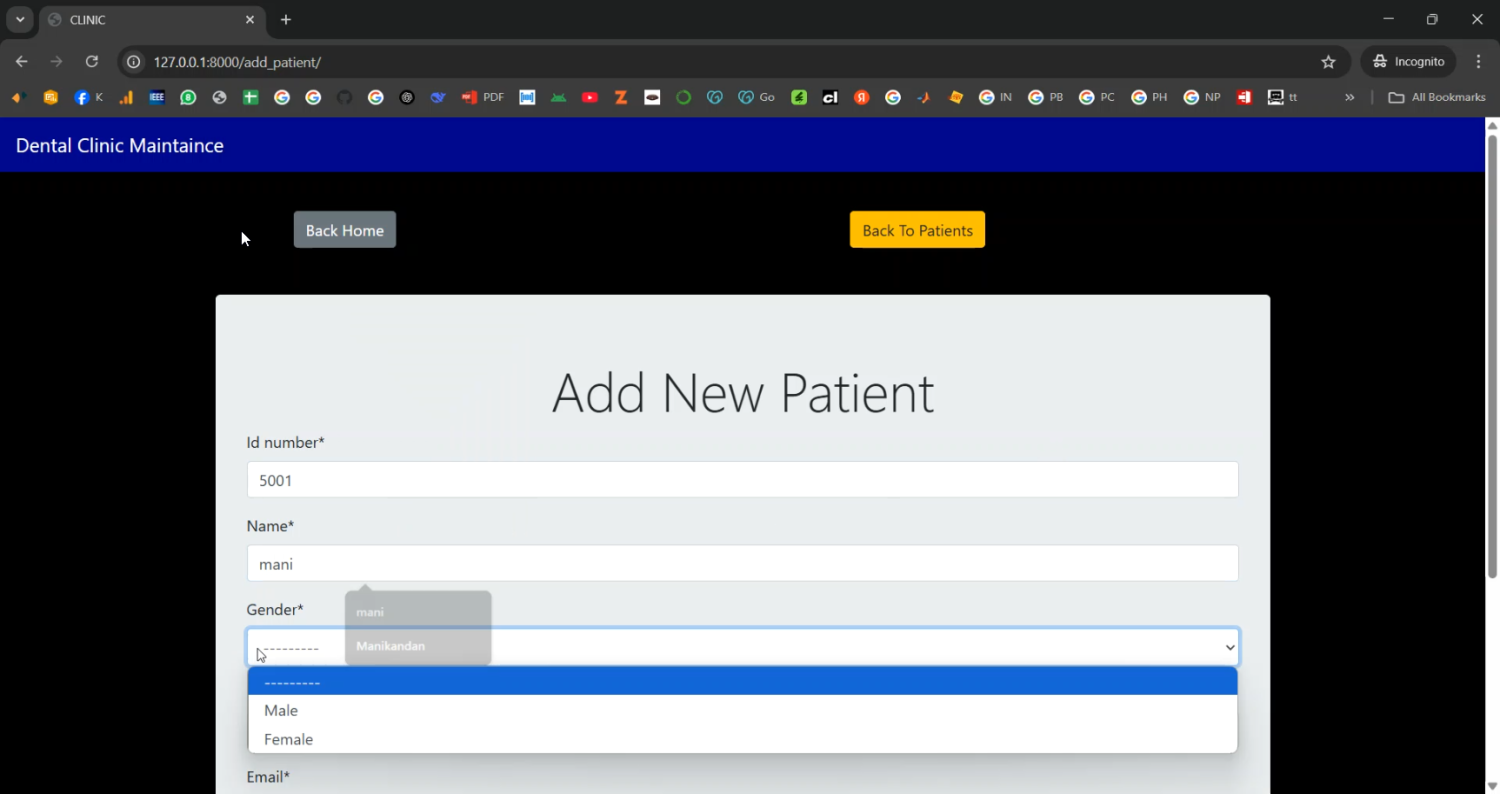 Efficient management of dental clinics requires organized patient records, treatment histories, and accurate tracking of dental conditions. This project focuses on developing a Dental Clinic Maintenance and Tooth Chart Generation system using Django Python, designed to streamline clinic operations while providing a visual representation of patients’ dental health. The system allows dentists to maintain patient profiles, record treatments, schedule appointments, and generate dynamic tooth charts for diagnostic and treatment purposes. By digitizing clinic management and automating tooth chart generation, the system enhances workflow efficiency, accuracy in patient care, and long-term record maintenance.