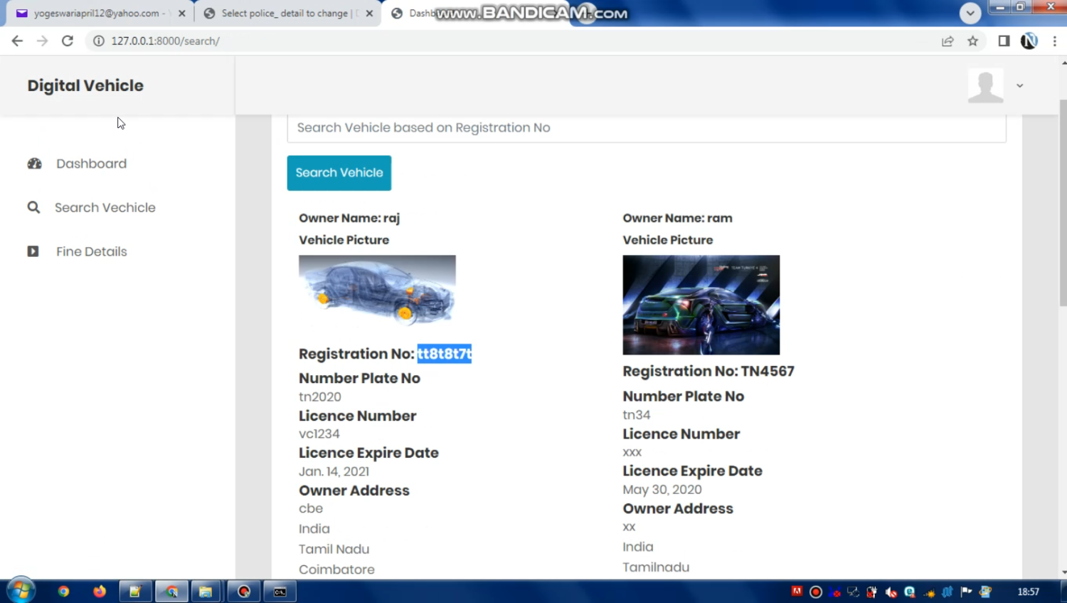 Digital Vehicle – License, Insurance, Rc Book Tracing and Fine Collection in Django Python