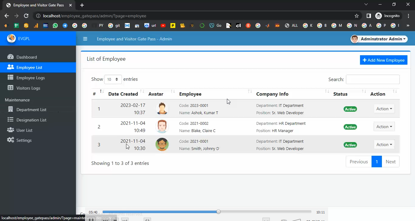 The Employee Visitors Pass Management System is a PHP-based web application designed to streamline the process of issuing and managing visitor passes for employees and guests in an organization. It allows administrators or security staff to register visitors, generate passes, track entry and exit times, and maintain a digital record for future reference. By automating visitor management, the system enhances security, reduces paperwork, and improves the visitor experience.