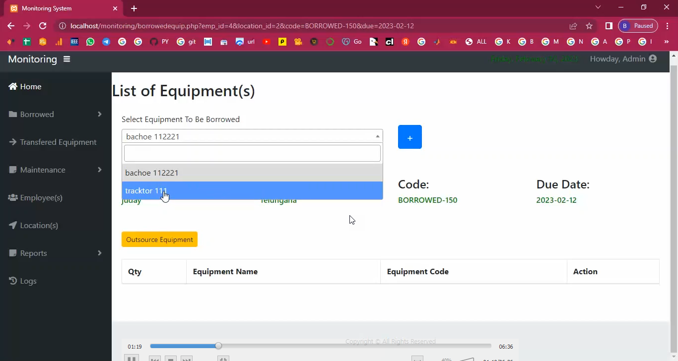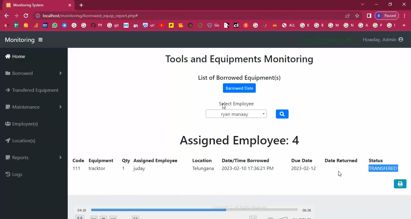 Empoyee Equipments Maintenance System in PHP Application Projects