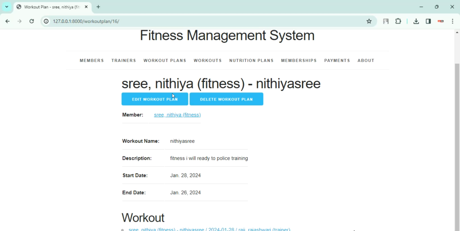 The proposed Fitness Management System in Django Python provides a centralized digital platform for managing all fitness-related activities. Users can register, set fitness goals, track workouts, record nutrition plans, and monitor their health metrics over time. Trainers or gym admins can manage member profiles, assign workout or diet plans, and review progress with data visualizations and reports. The system also includes secure authentication, reminders, and notifications to ensure consistency. By integrating all these features, the system improves fitness tracking, enhances trainer-client collaboration, and helps individuals achieve their health goals efficiently.