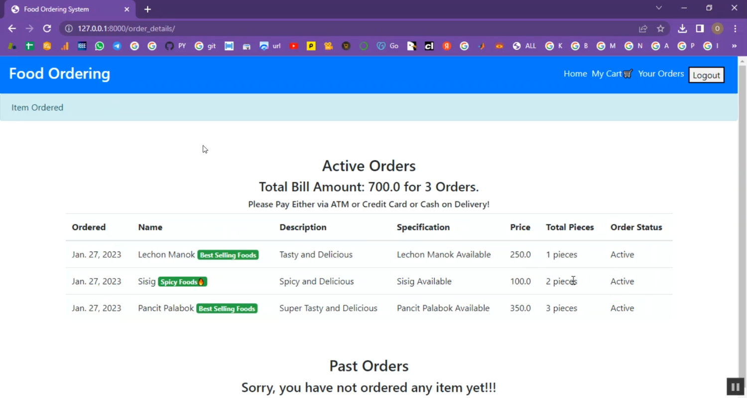 Food ordering systems have revolutionized how customers interact with restaurants, offering convenience, speed, and a better dining experience. This project focuses on developing a Food Ordering System in Django Python, designed to simplify the process of browsing menus, placing orders, and making payments online. The system connects customers directly with restaurants through a secure web interface where they can view menus, customize orders, and track delivery status in real time. By using Django’s robust and scalable framework, the system enhances order management for restaurants and ensures a smooth experience for customers.