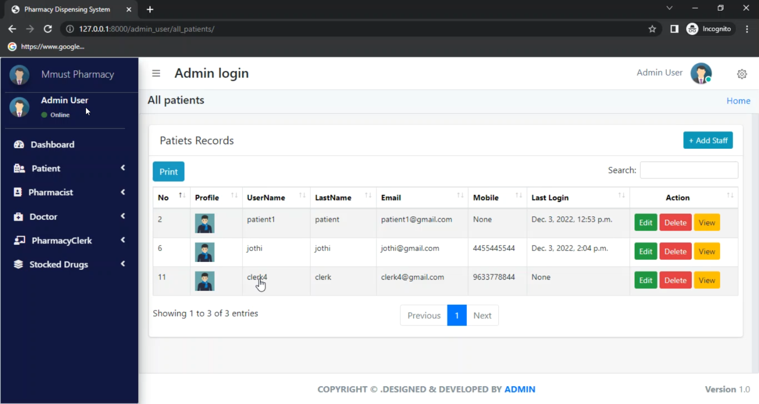 The proposed Pharmacy Management System in Django Python provides a centralized platform where pharmacists can record prescriptions, manage medicine inventory, track stock levels, and generate automated sales and expiry reports. Customers’ prescription history and medicine details are stored securely for easy reference. The system also includes alerts for low stock or near-expiry medicines, search functionality for quick access, and dashboards for performance monitoring. By integrating inventory, sales, and prescription management, the system improves pharmacists’ efficiency, reduces operational errors, and ensures timely and accurate service delivery to customers.