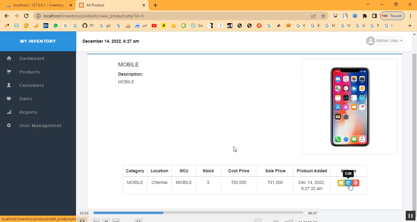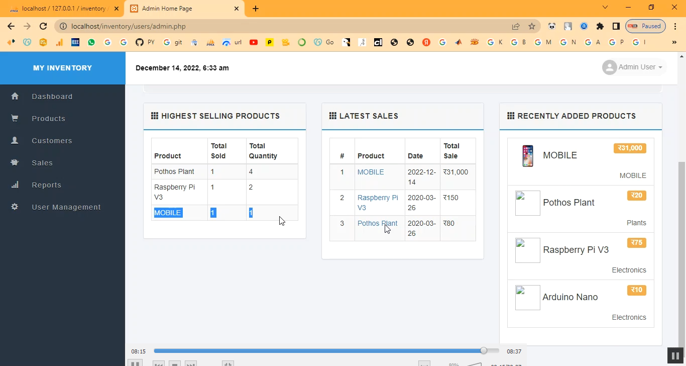 The Inventory Management System is a PHP–MySQL based web application developed to streamline the management of products, stock levels, suppliers, and sales. This system allows administrators to track inventory in real-time, generate purchase orders, update stock, and monitor product movement efficiently. By digitizing inventory operations, the system reduces manual errors, prevents stock-outs or overstocking, and improves overall organizational efficiency. It also provides detailed reports to assist in decision-making regarding procurement and sales.