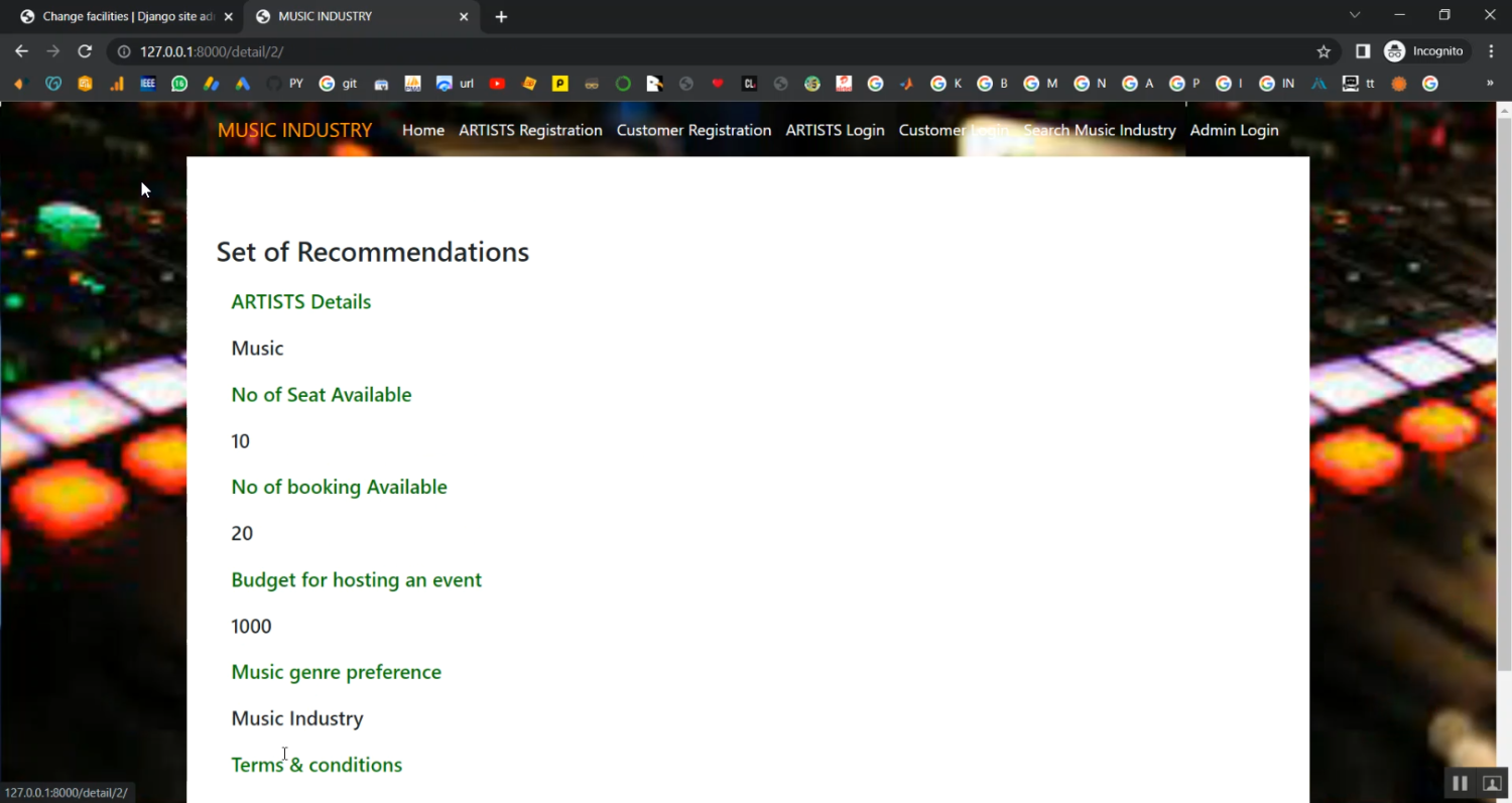Music streaming and management platforms allow users to easily access, organize, and play their favorite tracks. This project focuses on developing a Music Application in Django Python, designed to enable users to upload, manage, and stream music online. The system allows artists or administrators to add new tracks, albums, and playlists, while listeners can browse, search, and stream music directly from a web interface. Using Django with a PostgreSQL/MySQL database, the platform ensures secure file storage, scalable data management, and a user-friendly interface for an engaging music experience.