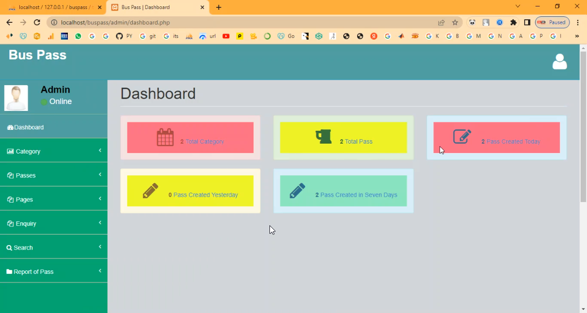 The Online Bus Pass System is a PHP–MySQL based web application designed to automate the process of applying for, renewing, and managing bus passes for passengers. This system allows commuters to register online, submit required details, make digital payments, and receive e-passes. Administrators can verify applications, approve or reject requests, and maintain a centralized record of all active and expired passes. By digitizing the bus pass process, the system reduces paperwork, saves time, and increases convenience for both passengers and transport authorities.