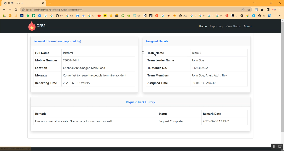 The Online Fire Reporting System is a PHP–MySQL based web application designed to allow citizens or employees to quickly report fire incidents online and alert the fire department in real time. The system enables users to submit fire incident details, upload photos or location information, and track the status of their report. Administrators (fire department staff) can receive, verify, and respond to reports immediately. By digitizing the fire incident reporting process, the system increases responsiveness, enhances public safety, and improves coordination between citizens and fire services.