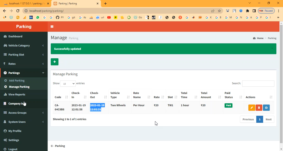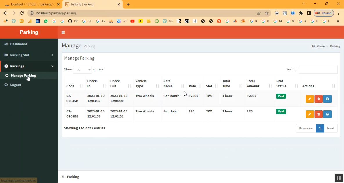 The Parking Management System is a PHP–MySQL based web application designed to streamline the allocation, monitoring, and management of parking spaces. This system allows administrators to register vehicles, assign parking slots, monitor entry/exit times, and generate automated receipts or reports. Users can pre-book or check the availability of parking slots online, reducing waiting time and congestion. By digitizing parking management, the system improves operational efficiency, transparency, and security.