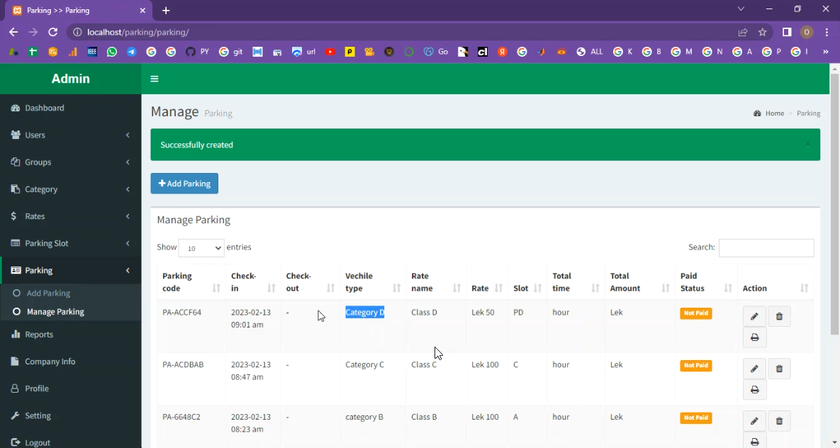 The proposed Parking Slot Allocation System automates the slot allocation process using PHP and MySQL. Administrators can create parking layouts, categorize slots (visitor, staff, student, two-wheeler, four-wheeler, etc.), and manage occupancy digitally. Registered users can log in to reserve a slot, view real-time availability, and receive digital confirmation of their allocated slot. The system tracks vehicle entry/exit times and generates reports on usage, billing (if applicable), and availability trends. By providing a secure, centralized, and user-friendly platform, the system minimizes disputes, optimizes parking space utilization, and improves the overall parking experience.