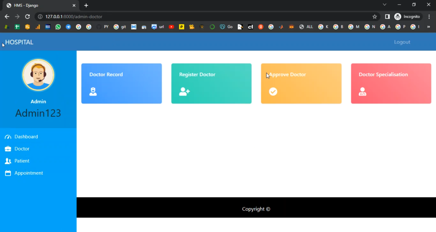 Healthcare centers often struggle with managing patient appointments and allocating the right doctors efficiently. This project focuses on developing a Patient Appointment Doctor Allocation System in Django Python, designed to streamline patient registration, appointment booking, and automatic doctor allocation based on specialization, availability, or priority. Using Django with a PostgreSQL/MySQL database, the system enables patients to book appointments online, while administrators or hospital staff can monitor schedules, manage doctor availability, and generate reports. This ensures better time management, reduced waiting times, and improved patient satisfaction.