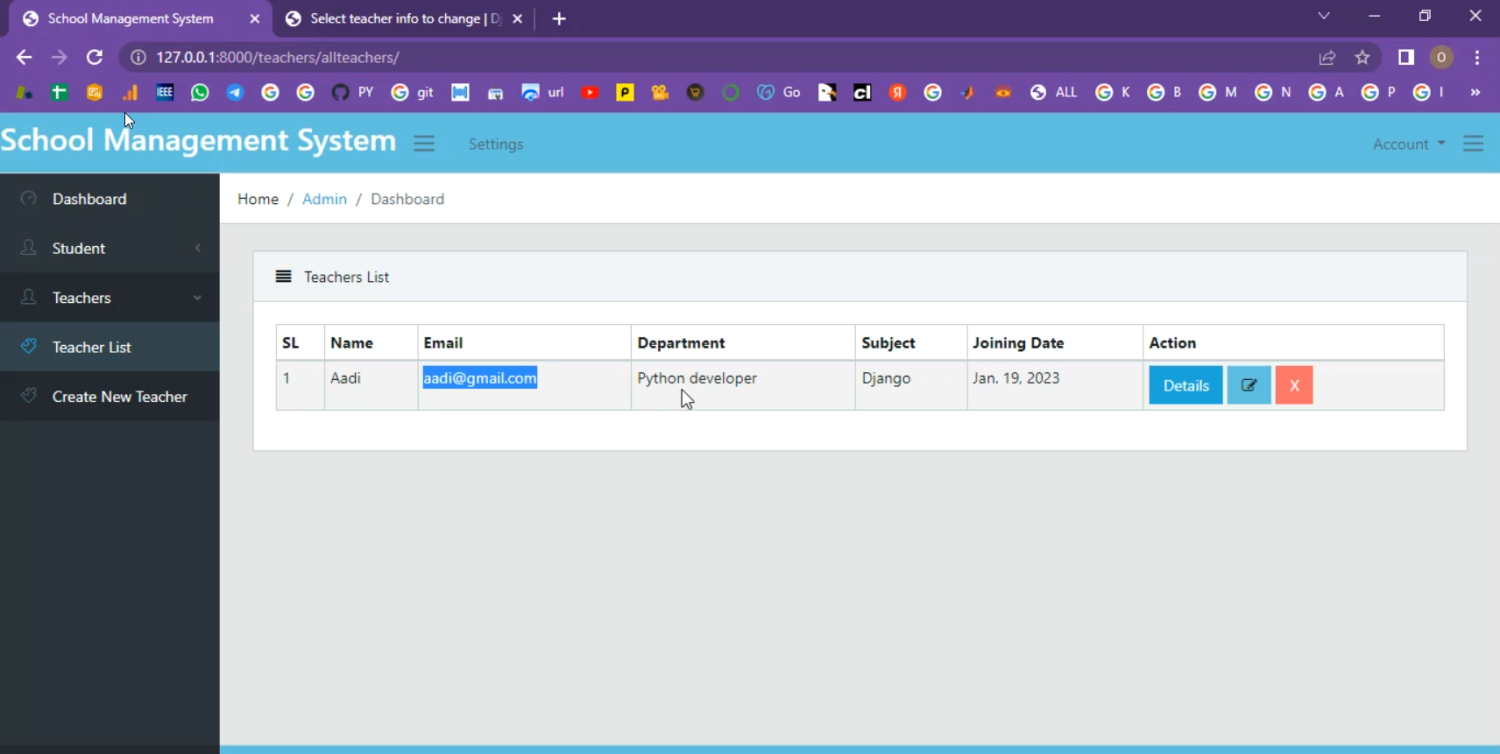 The proposed School System in Django Python provides a centralized platform where administrators can manage student admissions, teachers’ profiles, and class schedules. Teachers can record attendance, upload assignments, and evaluate exams, while students and parents can view academic progress, exam results, and announcements. Features such as automated notifications, digital report cards, timetable management, and attendance analytics improve efficiency. By digitizing school operations, the system minimizes administrative workload, enhances communication, and ensures a more organized and transparent educational environment.