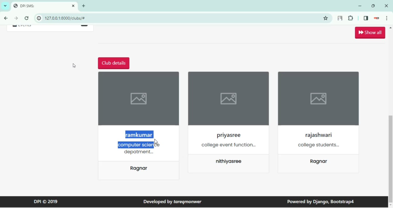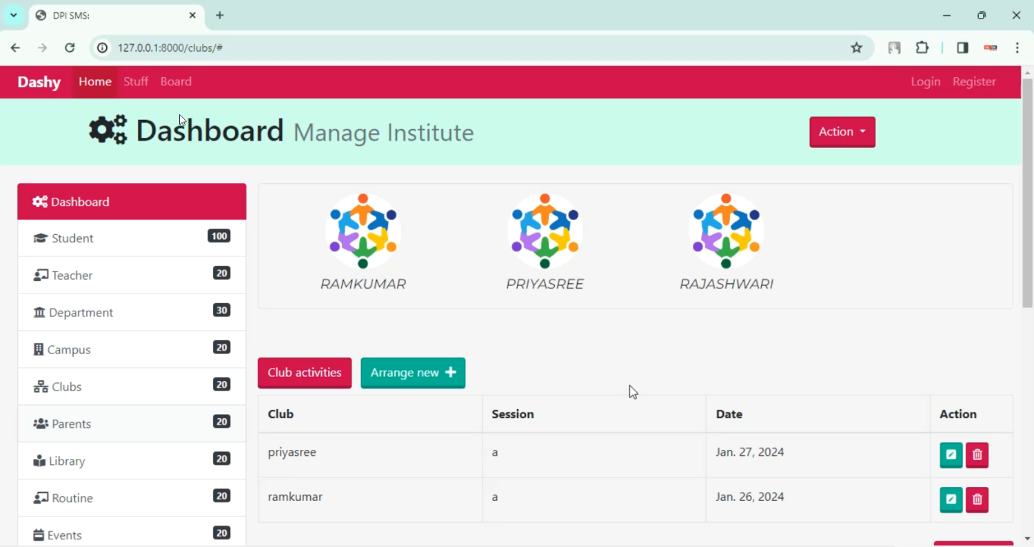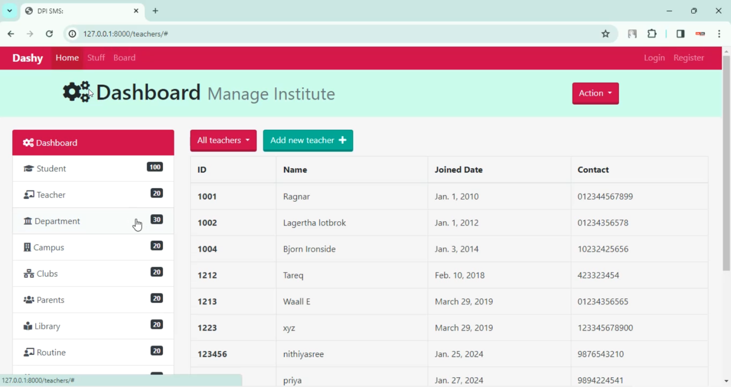 The proposed Students Management System in Django Python provides a centralized platform to store and manage all student-related data — including personal details, attendance, subjects, marks, and communication with parents. Administrators can manage admissions, allocate classes, and monitor student performance. Teachers can update attendance and grades instantly, while students and parents can access reports online. Features such as automated notifications, dashboards, analytics, and exportable reports further enhance usability. By digitizing student management, the system increases transparency, saves administrative time, and improves the efficiency of academic processes.