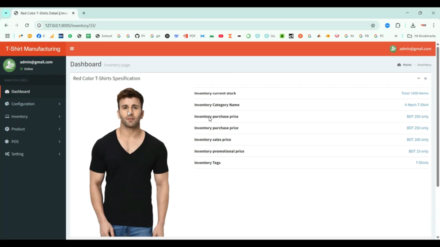 T shirt Manufacturing and Maintenance System in Django Python