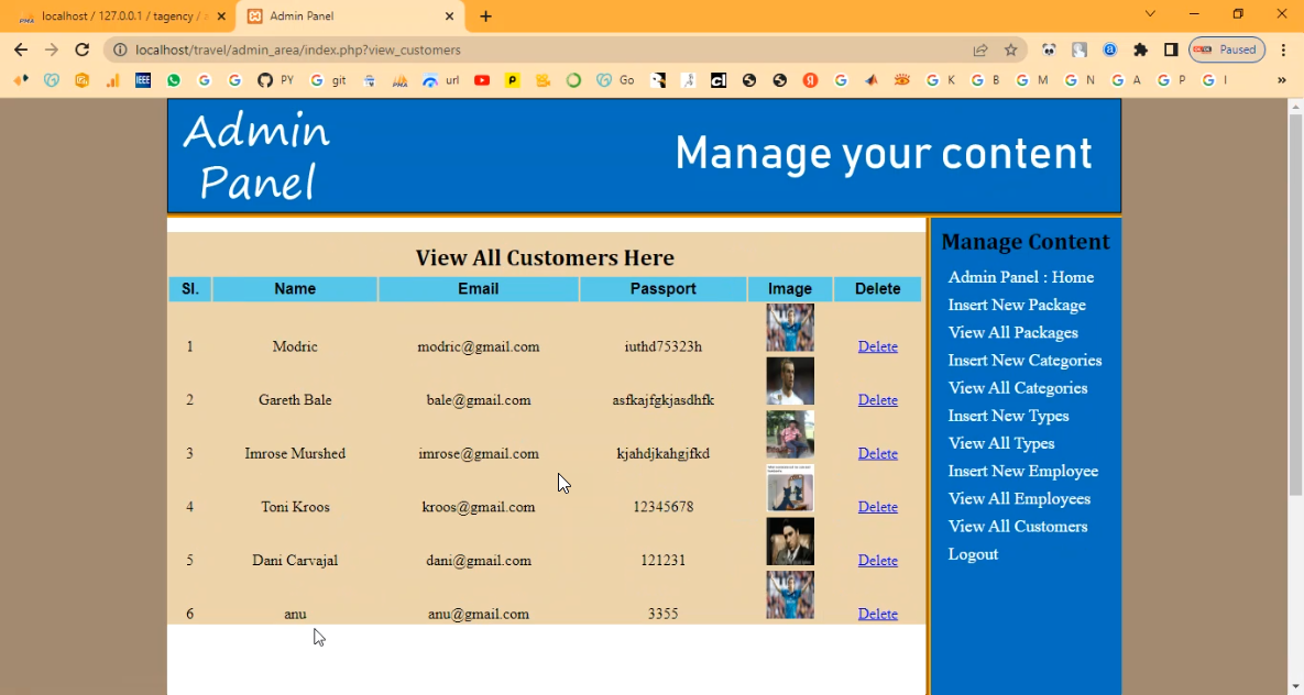 The proposed Travel Agency Management System in PHP digitizes the travel booking and management process. Administrators can add or update travel packages, manage customer bookings, track payments, and generate invoices automatically. Customers can browse available tours, view details, book trips online, and receive booking confirmations via email or SMS. The system also generates reports on bookings, revenue, and package trends. By automating these processes, the system ensures accurate record-keeping, faster service, and improved transparency between the travel agency and its customers.