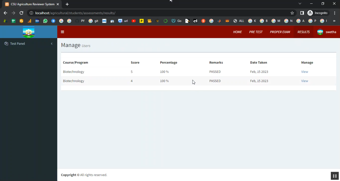 Agriculture students and professionals preparing for certification or competitive exams require a systematic and interactive platform to practice and review subject-specific questions. This project focuses on developing an Agriculture Exam Reviewer in PHP, designed to help users review and test their knowledge in various agricultural topics. The system allows administrators to add questions, categorize them by subject, and manage user accounts, while students can take quizzes, review their answers, and track progress. Using PHP and a MySQL database, the application delivers a secure, user-friendly interface to improve learning outcomes and exam readiness.