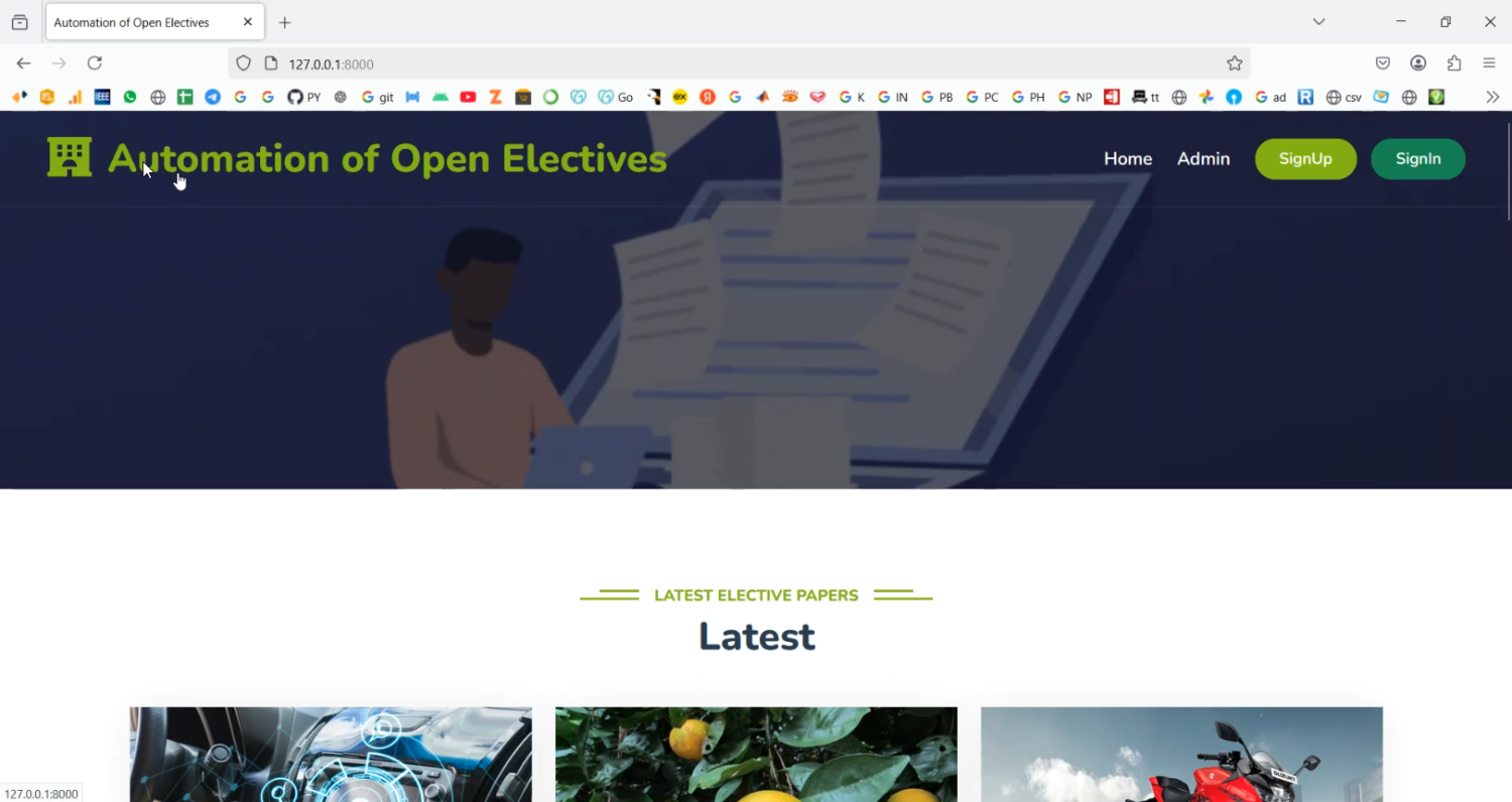 Open electives are an integral part of academic curricula, allowing students to choose courses beyond their core domain to broaden their knowledge. However, manual management of open elective registration often leads to challenges such as overcrowded courses, lack of transparency, and time-consuming administrative work. This project, Automation of Open Electives in Django Python, aims to develop a web-based platform where students can easily view available electives, register for courses, track seat availability, and receive confirmations in real time. Faculty and administrators can manage course offerings, monitor enrollments, and generate reports. Developed using the Django web framework, the system ensures a fair, efficient, and transparent elective allocation process, reducing manual intervention and ensuring smooth academic operations.
