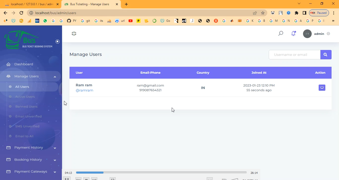 The Bus Ticket Booking Seat Allocation System in PHP is designed to automate the process of booking bus tickets with real-time seat selection and allocation. This system allows passengers to view available buses, select their preferred seats, and complete ticket bookings online. Administrators can manage bus routes, schedules, fares, and seat layouts from a centralized dashboard. Built using PHP and MySQL, the platform ensures secure transactions, real-time updates, and a seamless user experience for both passengers and bus operators.