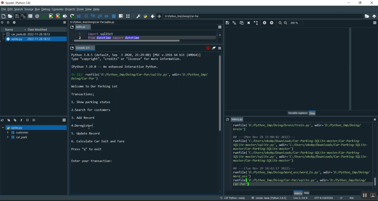 The proposed system provides a simple Python-based car parking management application that maintains records of parked vehicles and available slots. Users can input details such as vehicle number, entry time, and exit time, and the system automatically updates the slot availability. Administrators can view the current status of parking slots, track which vehicles are parked, and calculate parking duration or simple charges if required. The system can be further extended with a Tkinter GUI or Flask-based web app for user-friendly interaction. Compared to existing manual methods, this solution is low-cost, efficient, accurate, and scalable, making it suitable for small-scale deployment without the need for expensive infrastructure.