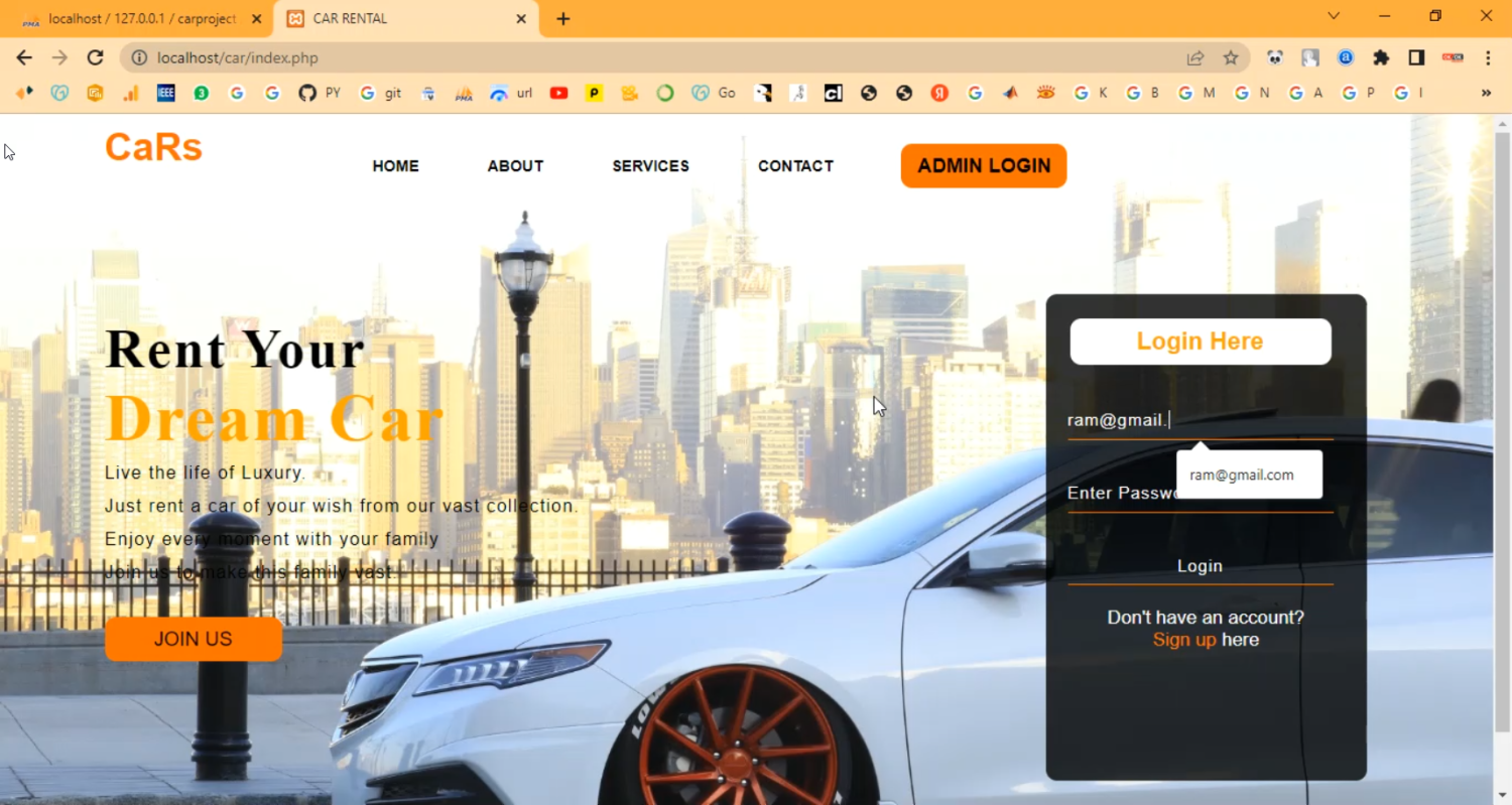 The Car Rental Management System in PHP is developed to automate and streamline the process of renting cars, managing bookings, and tracking vehicle availability. This system allows customers to view available cars, check rental prices, book vehicles online, and make secure payments. Administrators can manage car listings, rental schedules, customer records, and billing from a centralized dashboard. Built using PHP and MySQL, the platform provides secure data handling, real-time updates, and an intuitive interface for both customers and administrators.