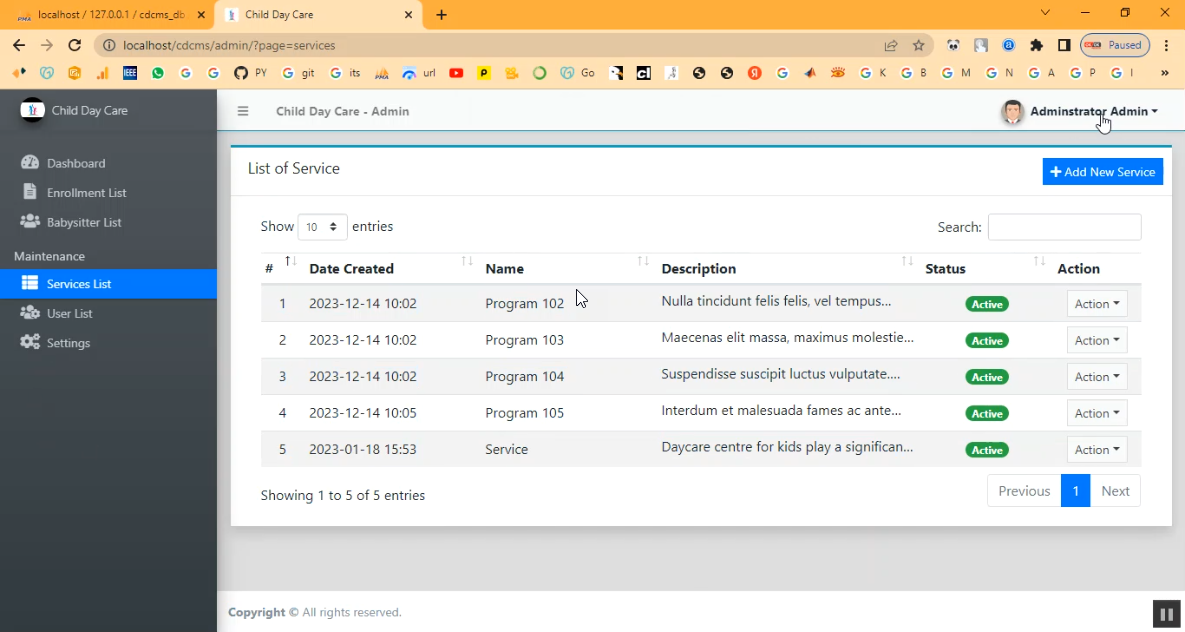 The Child Day Care System in PHP is designed to help childcare centers manage the registration, attendance, and daily activities of children efficiently. This system enables administrators to maintain detailed child profiles, monitor health records, manage staff schedules, and communicate with parents digitally. Built using PHP and MySQL, it provides secure data handling, easy access to records, and a user-friendly interface for day care operators and parents.