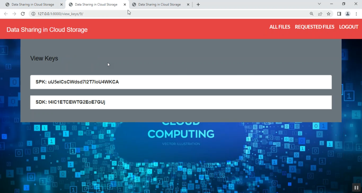 The proposed Django-based Cloud Data Share Encrypted Data Share Key System addresses these limitations by providing end-to-end encryption and secure key-sharing features. Before uploading, files are encrypted locally or via the application using AES/RSA. To access a shared file, the recipient must use a securely shared decryption key, which can be managed and distributed through the system. The platform includes user authentication, role-based access control, secure file storage, and key lifecycle management. Administrators can monitor activity, but cannot access file contents since encryption is user-controlled. Features like download restrictions, key revocation, activity logs, and notifications strengthen security. Compared to existing systems, this solution ensures higher confidentiality, user-controlled encryption keys, and secure data sharing while maintaining the convenience of cloud storage.