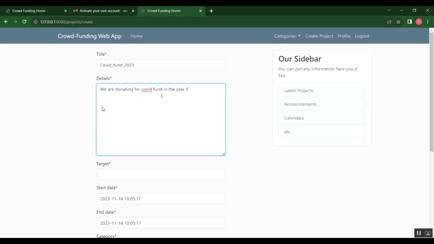 Crowdfunding platforms have become a popular means for raising funds for startups, social causes, and personal projects. However, the increasing number of fraudulent campaigns and fake identities has raised concerns about trust and authenticity. This project, Crowd Funding Email Authentication in Python, develops a system that verifies and authenticates user emails to ensure the legitimacy of crowdfunding campaigns. Using Python libraries such as Flask, Pandas, Scikit-learn, and Email validation APIs/SMTP protocols, the system performs email authentication, domain verification, and spam detection to filter out fake or malicious users. This enhances trust in crowdfunding platforms by ensuring only verified contributors and campaign creators are allowed, thereby reducing fraudulent activity.