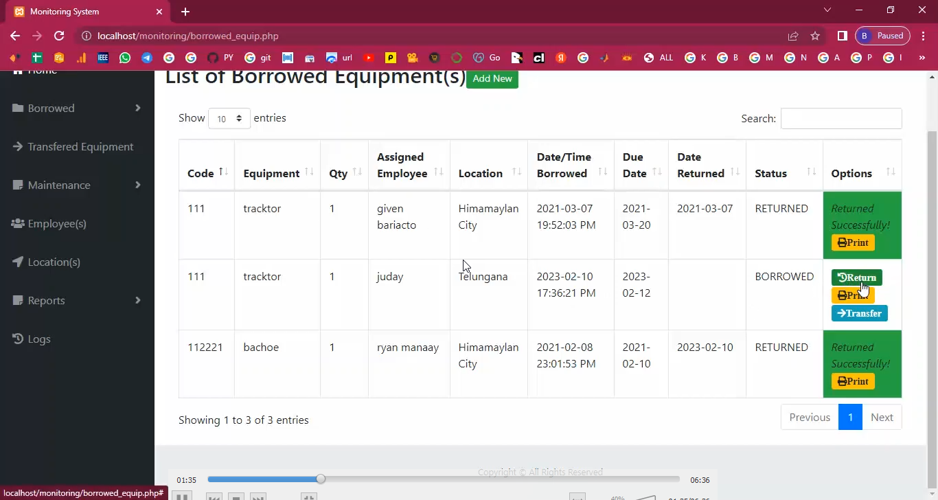 Empoyee Equipments Maintenance System in PHP Application Projects