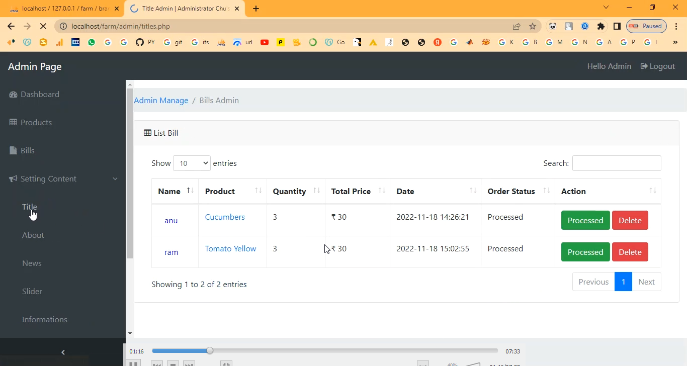The Farmer Sales Products System is a PHP-based web application designed to facilitate the online sale and management of farm products. It provides farmers with a platform to list their products, manage inventory, and track sales efficiently. Buyers can browse available products, place orders, and make payments online. The system aims to reduce intermediaries, ensure timely delivery, and provide a transparent, organized, and efficient sales process. Additionally, administrators can monitor transactions, generate reports, and analyze sales trends to improve overall farm product distribution.