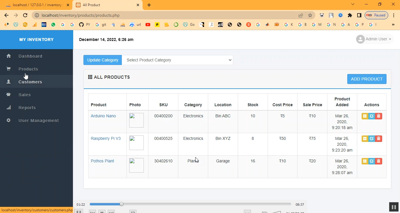 The proposed Inventory Management System automates inventory operations using PHP and MySQL. Administrators can log in to add, update, or remove products, track stock levels, manage suppliers, and generate purchase orders. The system provides alerts for low stock, maintains a detailed history of product movement, and generates reports on sales, stock availability, and supplier performance. By providing a centralized, real-time, and user-friendly platform, the system enhances inventory accuracy, reduces operational costs, and improves decision-making regarding stock management and procurement.