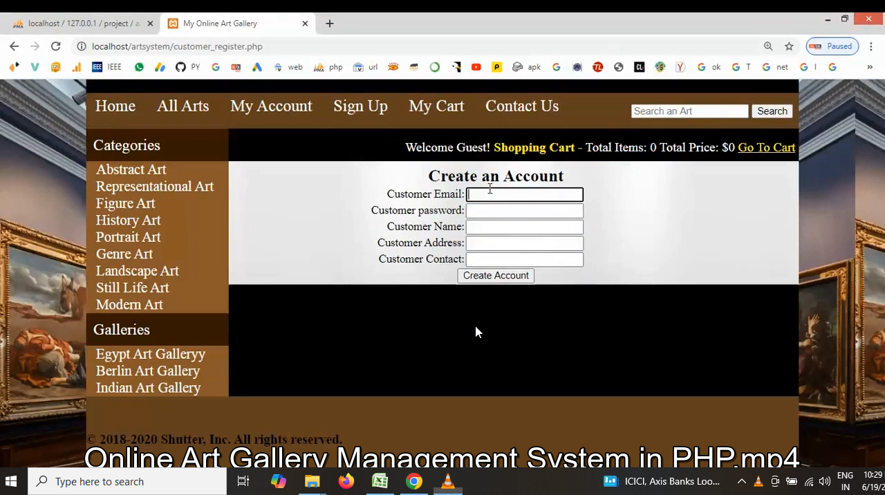 The proposed Online Art Gallery Management System automates the entire process of art exhibition and sales using PHP and MySQL. Artists can register, upload high-quality images of their artworks, and manage their portfolios. Buyers can browse artworks by category, view details, and purchase securely online. Administrators can manage user accounts, approve art listings, track transactions, and generate reports on sales and artist performance. The system provides a centralized, secure platform for showcasing art, handling payments, and promoting artists’ work globally. By offering a user-friendly interface and efficient back-end management, it improves accessibility, transparency, and growth opportunities for both artists and buyers.