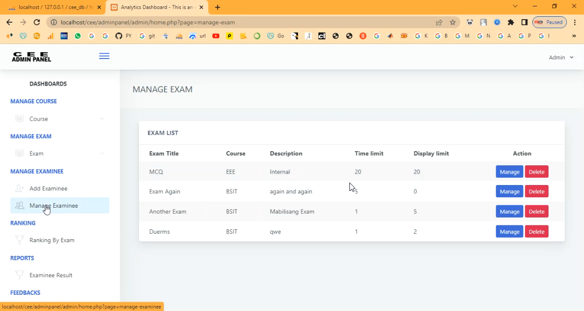 The Online Exam Management System is a PHP–MySQL based web application designed to create, manage, and conduct examinations online. The system allows administrators and teachers to create question banks, schedule exams, and evaluate students automatically, while students can register, take tests, and view results in real time. By automating the entire examination process, the system reduces administrative workload, improves accuracy in evaluation, and provides a secure, accessible platform for both students and examiners.