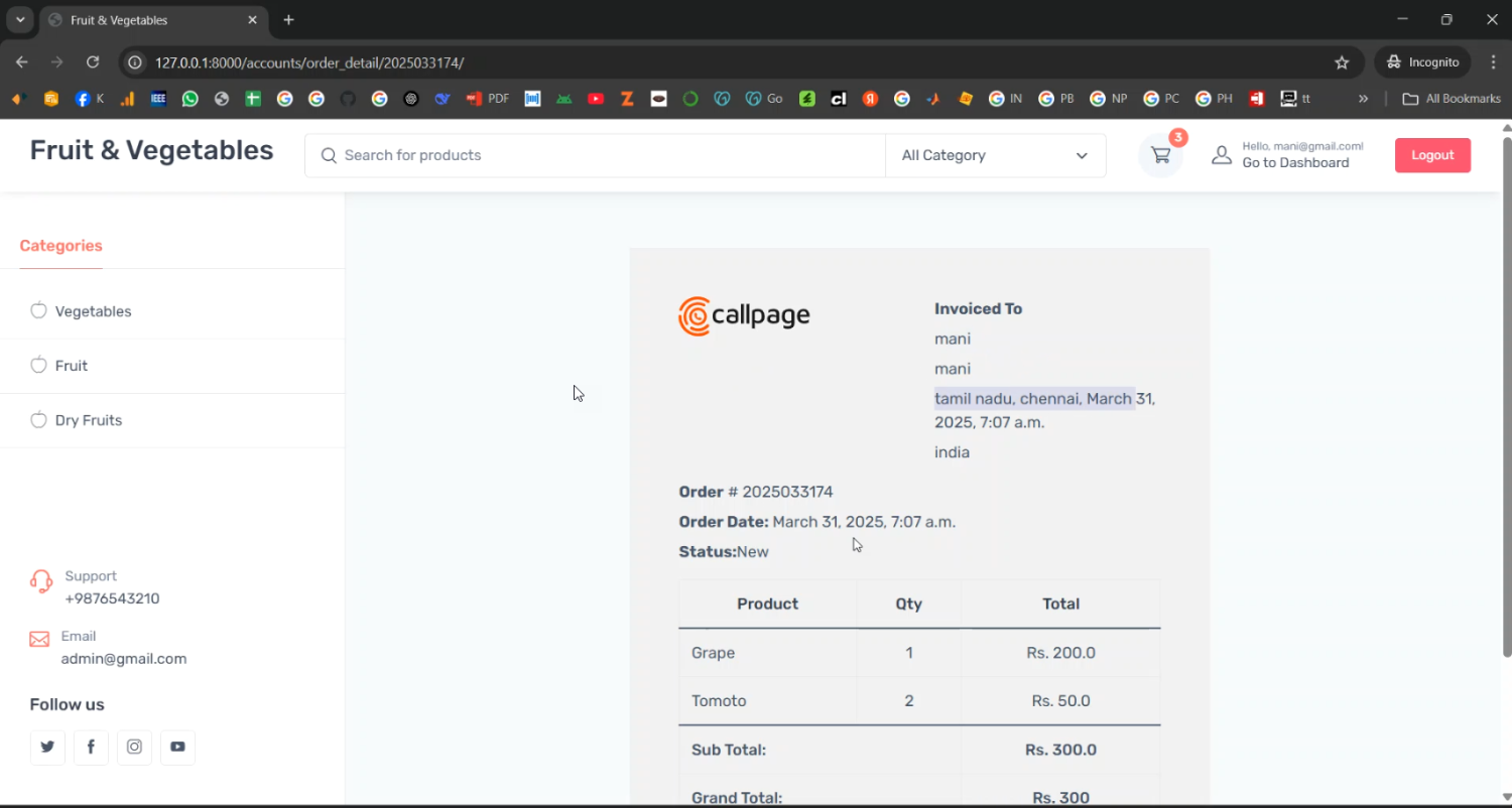 Organic fruit and vegetables selling Web app in Django Python