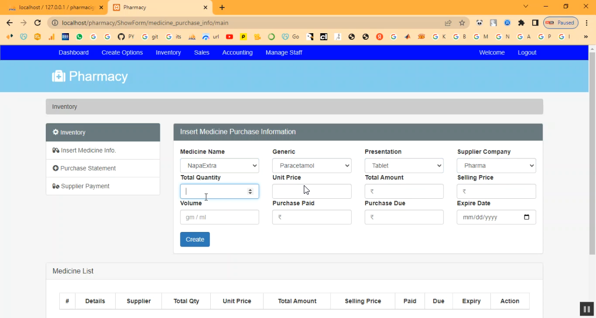 The proposed Pharmacy Information System automates all pharmacy operations using PHP and MySQL. Administrators can add and manage medicine details, including batch numbers, expiry dates, stock quantities, and prices. The system also manages suppliers, purchase orders, and sales transactions. Customers can submit prescriptions (if applicable), order medicines online, and pay securely. The system automatically updates inventory after each transaction and generates reports on stock levels, sales trends, and supplier performance. By offering a centralized, secure, and user-friendly platform, the system reduces manual effort, increases accuracy, and enhances transparency for both pharmacists and customers.