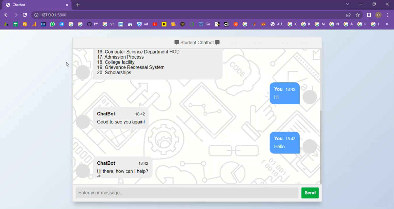 The proposed Student Chatbot in Django Python provides a centralized platform where students can interact with a chatbot integrated into the institution’s website or portal. Administrators can add or update question-answer pairs, train the chatbot to respond to new queries, and analyze query logs to improve services. Features like natural language processing (NLP), multi-language support, and integration with student information systems can further enhance the chatbot. By digitizing student support, the system improves communication, reduces staff workload, and ensures instant, accurate responses to student queries.
