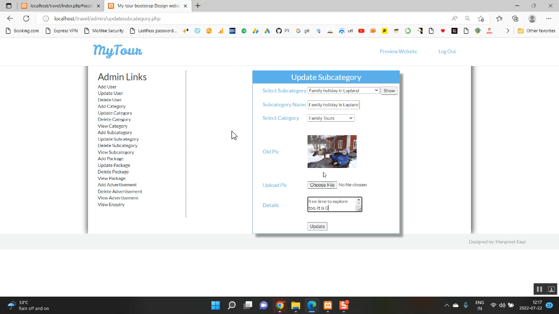 The Travel Management System is a PHP–MySQL based web application designed to automate and manage travel-related operations efficiently. It enables organizations, travel agencies, or individuals to handle trip bookings, itineraries, customer details, and payments in a centralized platform. By providing an online system for managing travel activities, it reduces manual effort, improves organization, and enhances customer satisfaction.